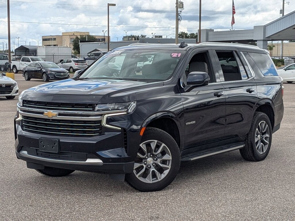 Call Chevrolet West Colonial today at 407-295-7000 to schedule your appointment and experience this 2021 Chevrolet Tahoe LT in person! 2021 Chevrolet Tahoe LT 4WD – Power, Luxury & Space Turn every drive into a first-class experience with this Midnight Blue Metallic 2021 Tahoe LT, powered by a strong 5.3L EcoTec3 V8 paired with a 10-speed automatic transmission for smooth performance and confident capability. Built to move your family or crew with ease, it combines bold SUV styling with premium comfort and technology. Step inside and enjoy heated leather front bucket seats, tri-zone automatic climate control, and a spacious cabin with power-folding third-row seating. This Tahoe is loaded with convenience, including a hands-free power liftgate, wireless charging, panoramic power sunroof, and a premium Bose 9-speaker audio system. Technology takes center stage with the Chevrolet Infotainment 3 Premium system, boasting a 10.2-inch HD touchscreen with built-in navigation, wireless Apple CarPlay/Android Auto, Bluetooth streaming, and dual rear 12.6-inch HD entertainment screens to keep everyone connected and entertained. For safety and peace of mind, this Tahoe is equipped with Chevy Safety Assist features like Automatic Emergency Braking, Forward Collision Alert, Lane Keep Assist, and Front Pedestrian Braking, plus HD Surround Vision, Rear Cross Traffic Alert, Blind Zone Alert, and Front/Rear Park Assist. With the LT Signature Package, you also get upgrades like heated second-row seats, memory driver settings, heated power-folding mirrors, and a heated steering wheel—bringing true luxury to this full-size SUV. Don’t wait—call Chevrolet West Colonial at 407-295-7000 today and make this 2021 Tahoe LT 4WD yours before it’s gone!